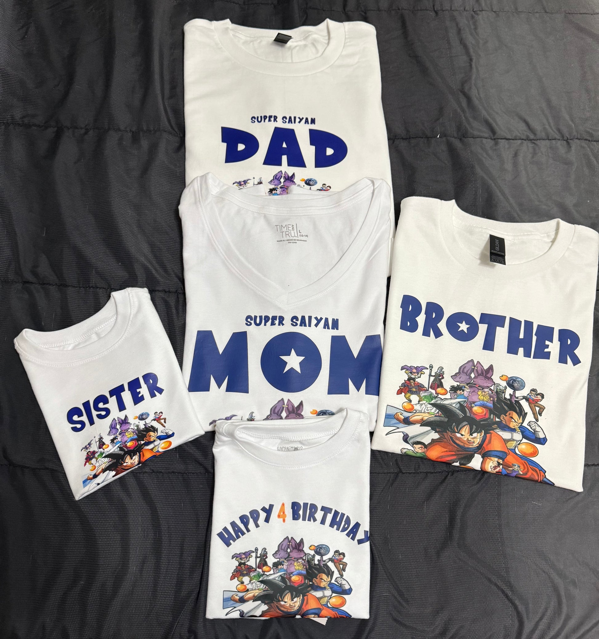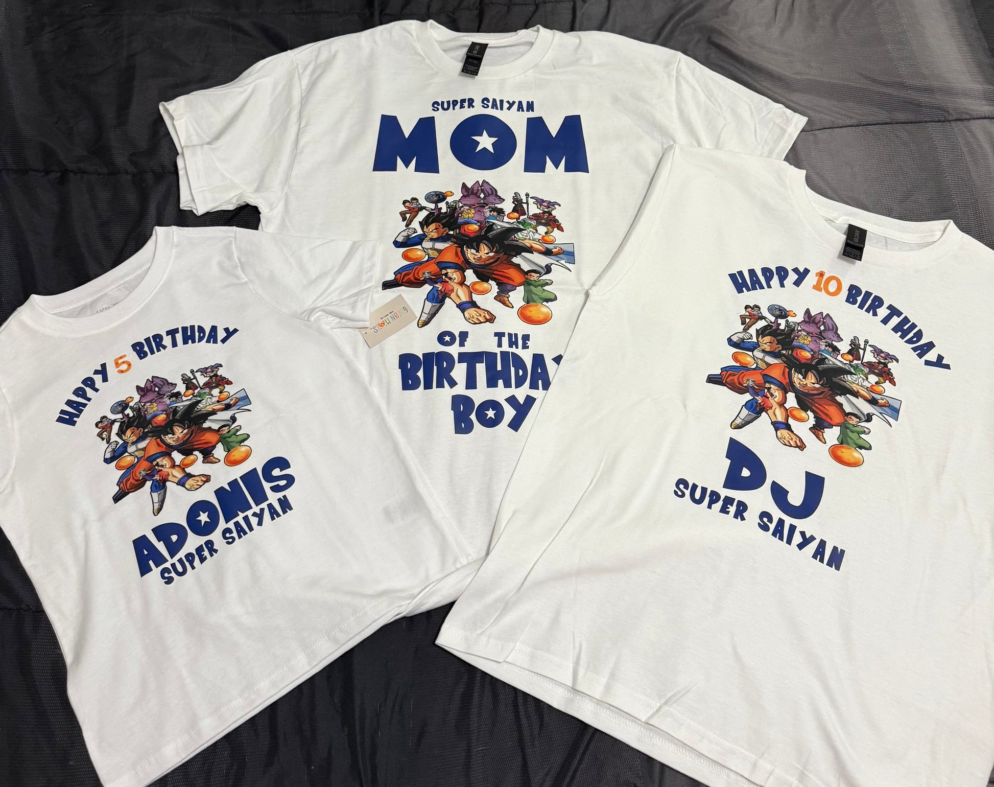 Personalized Anime dragon ball z birthday party matching t-shirt. Custom t-shirt for any occasion. Many characters available