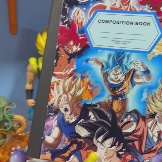 Inspired by Dragon Ball! This composition book features your favorite anime character. Perfect for back-to-school, it's a great way to start the academic year. Regular composition book (wide ruler)cover with waterproof stickers papers.
